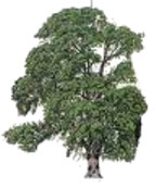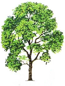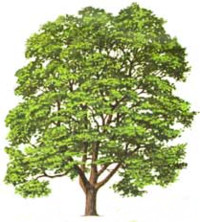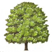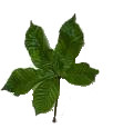 Horse Chestnut (Aesculus hippocastanum) TA deciduous tree growing to about 30m with a dense broad crown. Main trunk rather short and twisted. Long stalked leaves with 5-7 obovate leaflets radiating from a central point. Leaflets about 25cm long with double toothed margins.