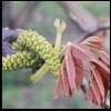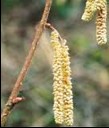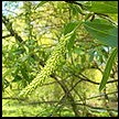 The male catkins hang down and turn yellow with pollen in spring pollinating the female catkins by the
