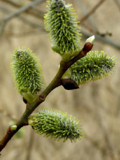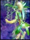 Catkins appear with the leaves in late March until April. Both male and female whitish flowers are in the same catkin. The fruit is a bivalvate capsule with numerous seeds on a silky hair shaft.