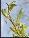 Male and female flowers are in 4-6cm catkins, which appear with leaves on separate trees in April and May. The male catkins have pale yellow scales and golden-yellow anthers. The female catkins are also yellow. The flowers have short stigmas and mature into white woolly seeds in summer. The tree is often planted next to rivers as the roots help stabilise the banks. It also attracts insects in the spring and was favoured by beekeepers.