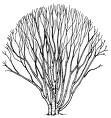 Grey Sallow (Salix cinerea). Grey Sallow is a tall shrub or small deciduous tree which usually grows no higher than 10m tall. It is generally much branched from the base but can sometimes be found with a distinct trunk. Branches spread to form a broad, rounded or flattened crown. It has dark grey-brown bark which becomes fissured with age. The leaves are very varied, usually obovate, spirally arranged, 2-9cm long and 1-3cm broad (exceptionally up to 16cm long and 5cm broad) They are dull grey-green and pubescent above and ash grey and hairy below, with a crenate margin.