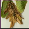 The wind pollinated male and female catkins appear on the same tree in May. The fruit is a small 7-8mm long nut, partially surrounded by a three-pointed leafy involucre 3-4cm long; it matures in the autumn.. The wood of the hornbeam is extremely hard and is not widely used for timber due to the difficulty in working it. The wood was valuable for fuel as it burnt hot enough to smelt iron.