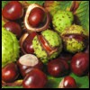 The flower spike is 12-20cm tall with the indivicual flowers much smaller. The nuts look a bit like a regular chestnut and are surrounded by a thick hull. The conker nut matures in late summer to early autumn.