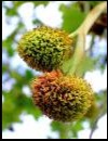 The flowers and fruit are round and burr like, borne in clusters of between 3 and 6 on a stem. They can be up to 25 mm across. Male and female flowers are separate but on the same tree. Plane trees are wind-pollinated. The male flower-heads fall off the branch after shedding their pollen.