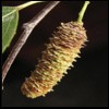 Male and female catkins appear on separate trees in March and are pollinated by the wind. The red male catkins soon fall whilst the greenish females develop into masses of white fluff at the end of June which scatter the seeds in the wind. The subspecies betulifolia is one of the rarest trees in Britain and is mostly found in wet areas along the margins of rivers. Only about 7,000 trees are known, of which only about 600 have been confirmed as female.
